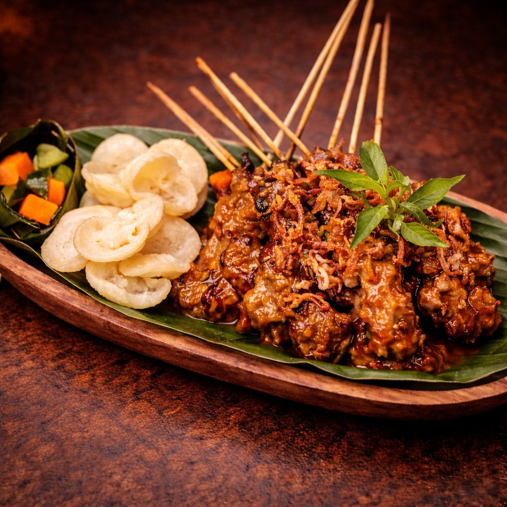 More than a simple fried rice, this signature plate brings together fragrant rice, egg, tender chicken, smoky chicken satay, bright acar, and crunchy peyek.